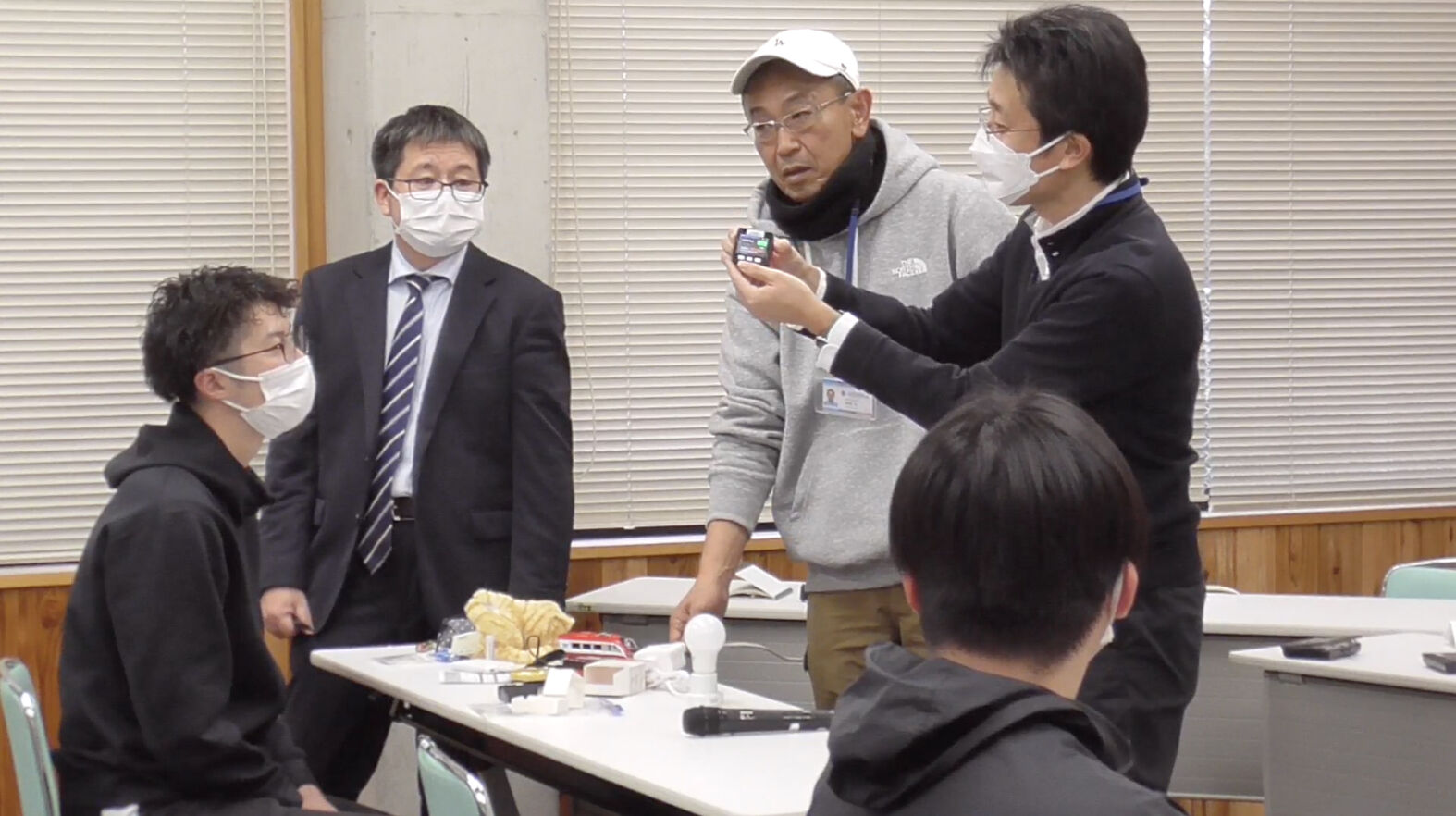 ワークショップに参加された教員1人につき1セット(KME本体、MaBeee、SwitchBotプラグミニ)を配布して、KME本体の電源をONにする方法から機能の切り替え方法までを説明しながら、実際に持ち寄った乾電池式オモチャや家電品を操作してもらいました。