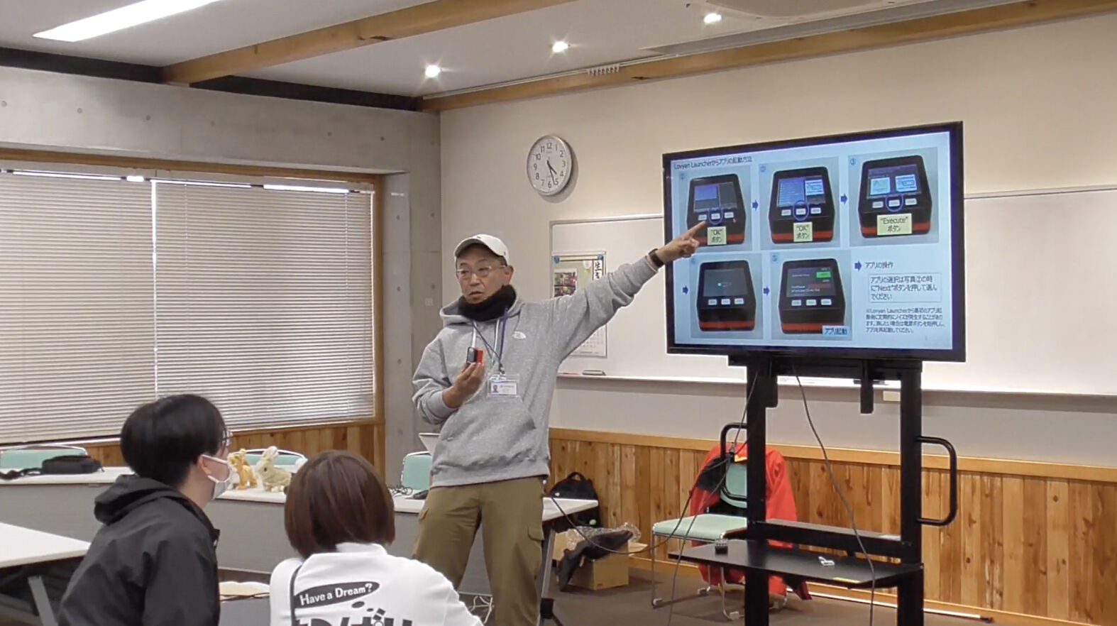 ただし、設定方法や使い方、そもそも何のために使う機器なのかといったことをレクチャーする必要がありますので、1月11日(木曜日)16:00〜K支援学校で1回目のワークショップを行いました。